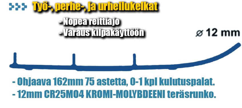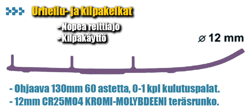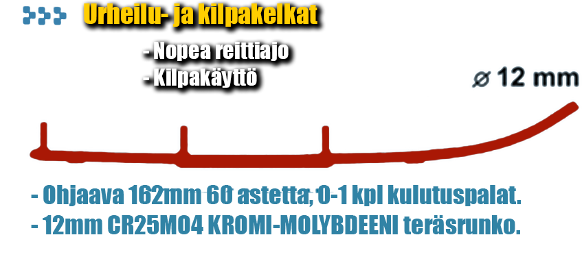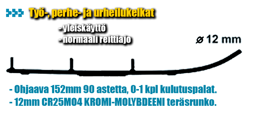 162 mm 75 asteen ohjaava pala ja 0-1 kpl kulutuspalat sovel-tuvat hyvin reittiajoon, käytetty myös kisoissa. Soveltuu niin pilkkikelkasta aina urheilukelkkoihin.